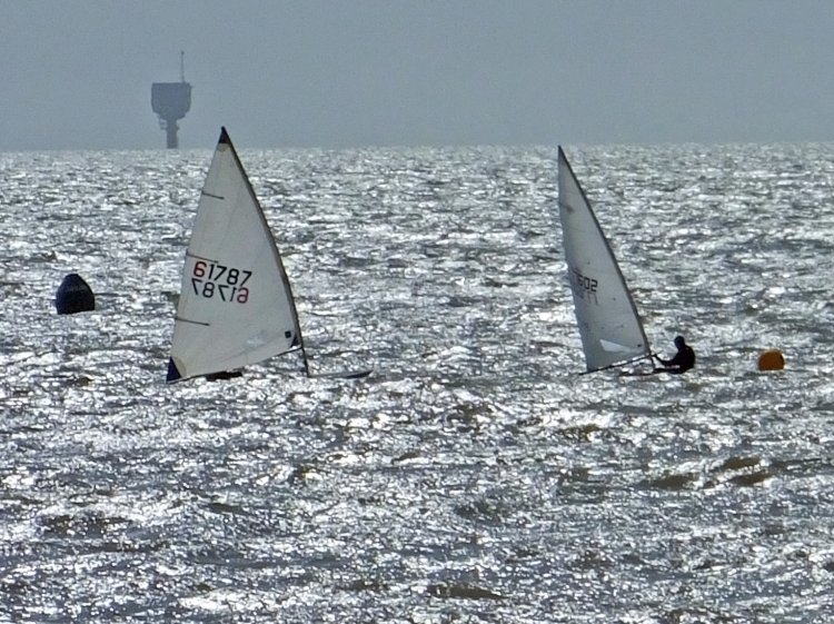 As the competitors took their boats onto the beach, the south/south-westerly wind was gusting 33 mph – a force 7. Several members thought better of it and assisted in the launching of their colleagues before retiring to the Clubhouse to witness some lively sailing. The start was an extremely tight affair with two boats over the line but, on sight of the individual recall flag, the helms corrected the situation but now commencing with a time disadvantage. Lotte Langfeldt, Andy Cornforth, and Dye all hit the line spot-on and the three, all sailing RS Aeros, beat down the coast towards the Lilley Farm buoy, heading into the shore to reduce the negative effect of the ebb tide. Cornforth appeared to have the speed but was sailing slightly freer whilst Langfeldt was slightly further out in the adverse tide. Cornforth was the first to tack and took Dye, Langfeldt, and Arlo Atkins in his Laser, on starboard. Next to tack was Brian Allen in his RS Aero and he timed it just right, following Cornforth, as lead boat, round the windward mark. However, as they reached out to the Seaward buoy, Dye refused to take this laying down and accelerated past Allen and into second place. Having been one of the guilty parties of being over the line at the start, Adam Kedge worked his Laser way through the fleet on the first leg and managed to slip past Langfeldt but she was having none of it and soon reversed the positions. Once round Seaward it was a run to the Preston Park buoy and every competitor had to decide at what point to gybe their craft, but everyone handled the manoeuvre smoothly and there were no capsizes. By now the wind had abated a little and blew a more steady force 5 gusting 6, allowing the helms to enjoy the reach back to the line. At the end of the first lap it was Cornforth in first place, followed by Dye and then Allen but on the first leg of the second lap, Cornforth misjudged his tack to Lilley Farm and so allowed Dye to fly past. From then on Dye pulled away whilst at the slow handicap end of the fleet, Finley Taylor sailed a very clean course and was first Topper home. Having cemented his lead in the second lap, Dye then went on to take the third and final lap.