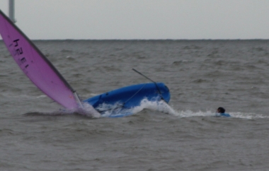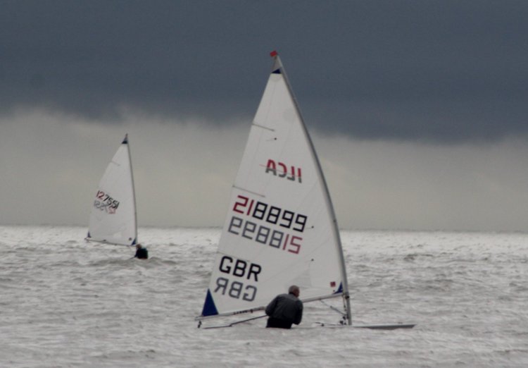 Up to six minutes before the start a force 4 gusting 5 southerly wind blew cold across the North Sea, but it then veered westerly in a matter of seconds, with quite vicious gusts causing a number of capsizes. It was of little surprise that, at the start, the fleet beat out to sea to benefit from the flood tide lift, as it headed down the coast to the Eastcliff mark. Ken Potts lead the way in his Laser, followed by Clarke in his Europe, and then Tim Dye in his Laser. The second leg was now a run to the AWS buoy with boats gybing a number of times under the wind shifts; Tom Bartlett, in his Topaz, leading in the capsize stakes. By now, Clarke had taken the top spot and held onto it on the reach out to the Seaward mark, as well as the return journey back to AWS, but Potts reclaimed the lead as the boats then headed up to the Kingscliff buoy. Dye, hanging onto his third position, then capsized as he made for Kingscliff, allowing Robert Mitchell to move his Laser up a place. Gybing at Kingscliff, it was out to the Preston Park buoy before beating back to the line. Unfortunately for Potts, he capsized just before completing the first lap which allowed Clarke to gain first place and Mitchell second. On the second lap it was Mitchell’s turn to capsize, but he wasn’t alone as Andy Stafford was also having his fair share of going over in his Laser. Dye, not downhearted because of his earlier capsize, seized the opportunity to take Mitchell and go after Potts; the latter capsized at the Seaward mark, righted the boat, and then capsized again, which gave Dye the chance he had been waiting for, sailing past him to then go for Clarke. At the end of the second lap, Clarke held the lead, but only just; the third and final lap saw Clarke give it his all, taking the winning gun, with Dye second, and Mitchell third.