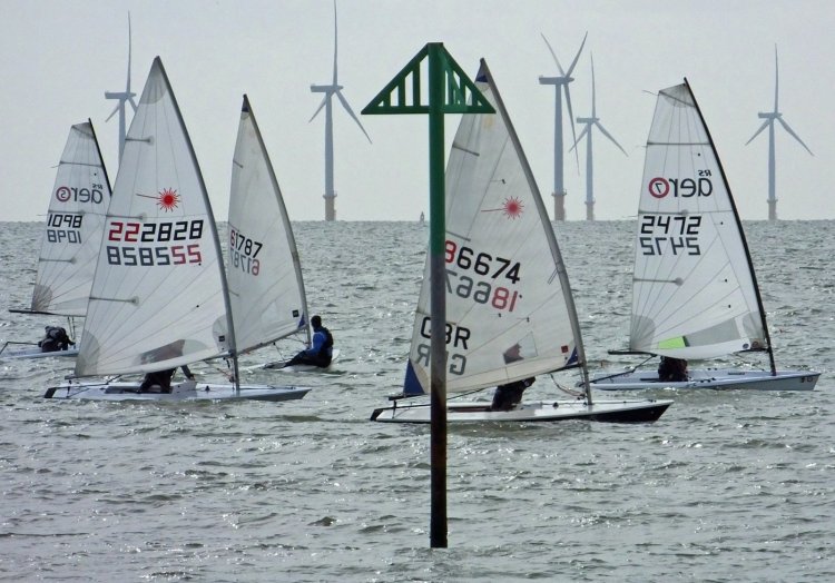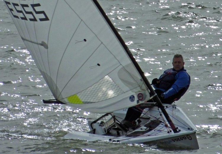 The next day, Sunday 29 March, the sailing got underway and, in a light south-westerly breeze, fourteen helms rigged their dinghies and launched onto a rather grey North Sea. With high tide coinciding with the start of the race the competitors sailed up and down the line seeking the most favourable position to take in order to try and pull away from the pack. As the class flag fell from the yardarm, Tim Dye, close to the Outer Distance Mark, Ken Potts at the shore end by the Inner Distance Mark, and Ella Langfeldt half way between the two, lead the fleet on port tack; all three sailing RS Aeros. To try and stem the adverse ebbing tide, everyone headed towards the shore with some helms putting in several short tacks around the groynes as they worked their way down the coast on the long beat to the St. Michael’s buoy. As they rounded the windward mark it was Potts leading, with Dye second, and Brian Allen in his RS Aero third. They were followed by Adam Kedge in his Laser and Ella, both neck and neck. The second leg was a run back to the Eastcliff buoy which didn’t take long with the tide under them. There then followed a reach out to the Seaward mark before a gybe and then in to the AWS buoy; it was whilst undertaking the gybe that Dave Ingle capsized his RS Aero but was quick in righting the craft and getting back into the thick of things. Potts, who continued his lead, unfortunately mistimed tacking round AWS and lost vital seconds completing a 360 degree penalty turn; sufficient delay to allow Dye to slip in front. However, the lead was short-lived as, by the time the two had fetched back out to Seaward, Potts had regained top spot. After a further reach in to the Kingscliff buoy it was then a beat back to the line. At the end of the first lap, on handicap, it was Potts first, Kedge second, and Dye third. On commencement of the second lap the wind, which had been a force 2 at the start, began to pick up and soon reached a force 5, making for some livelier sailing. Allan capsized his RS Aero at the Seaward gybe with the boat turning turtle, whilst Arlo Atkins, in his Laser, revelled in the conditions and started working his way up the fleet. Lotte Langfeldt, in her RS Aero, closed the gap enormously on her sister Ella and they claimed sixth and fifth position respectively but could not catch Atkins who came in fourth; all three being Cadets, along with Kedge who took a very impressive second place ahead of many seasoned adult sailors.